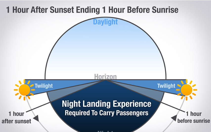 Pilot must have made 3 full-stop takeoffs and landings between 1 hour after sunset and 1 hour before sunrise within the last 90 days to carry passengers at night.